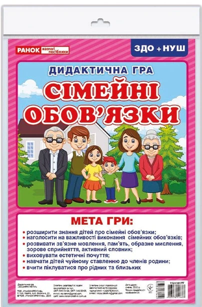 Дидактична гра Сімейні обов'язки ЗДО+НУШ